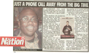 The film was also nominated for Best Short Film at the Pan African Film Festival and was broadcast on Sky’s ACTV to an audience of 800,000.